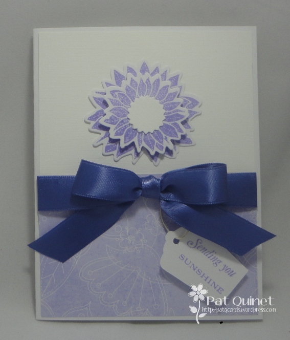 Today's cards are both purple, but one is a purple sunflower. I know, there is no such thing, but I wanted to see how this stamp set would look done in different colors. The paper is some old DSP from Stampin Up. And the sunflower is stamped in Lavender Lace. Both of these two items have been deprecated by Stampin Up. I don't know why--these are two of my faves.